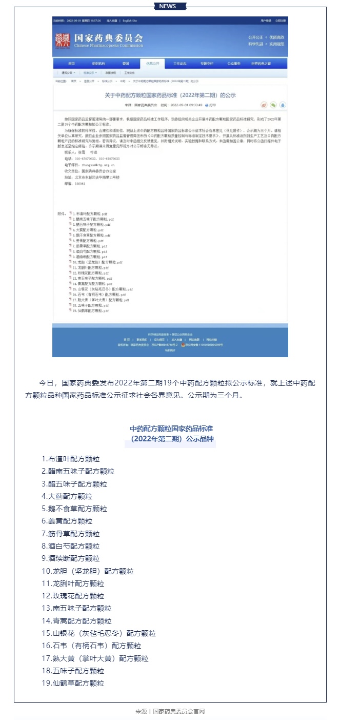關(guān)于中藥配方顆粒國家藥品標(biāo)準(zhǔn)(2022年第二期)的公示